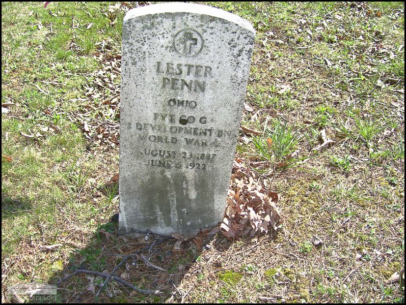- Photo image of the headstone of Lester Penn in Mt. Joy Cemetery located in Scioto County.