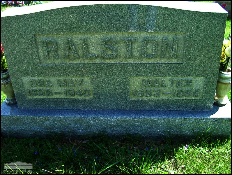 - Photo image of the headstone of Walter and Ora May Ralston in Mt. Joy Cemetery located in Scioto County.