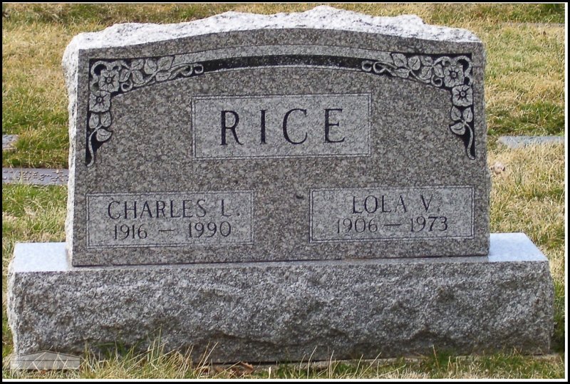 - Photo image of the headstone of Charles L. and Lola V. Rice in Scioto Burial Park located in Scioto County.