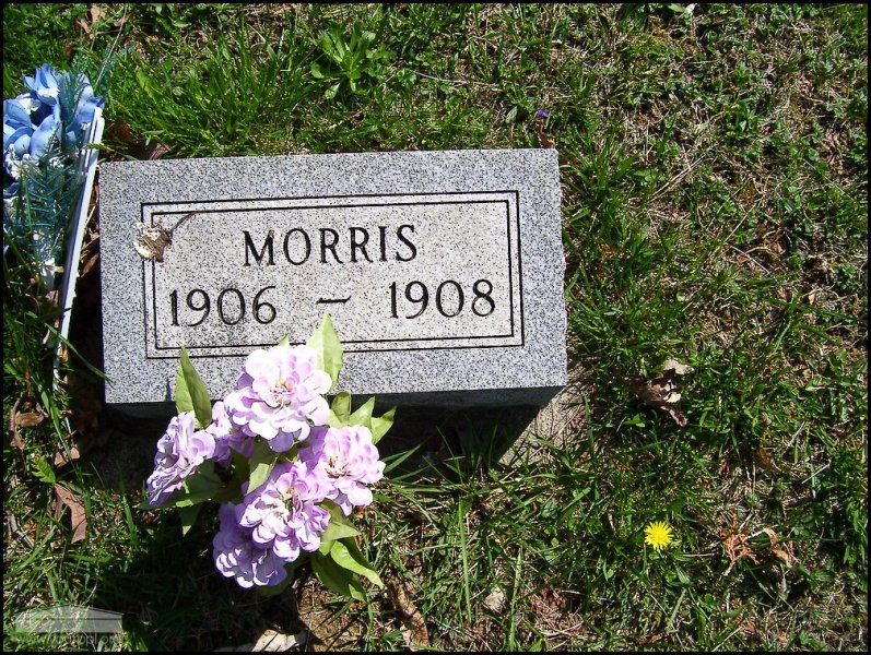 - Photo image of the headstone of a member of the Morris (Riley) family in Mt. Joy Cemetery located in Scioto County.