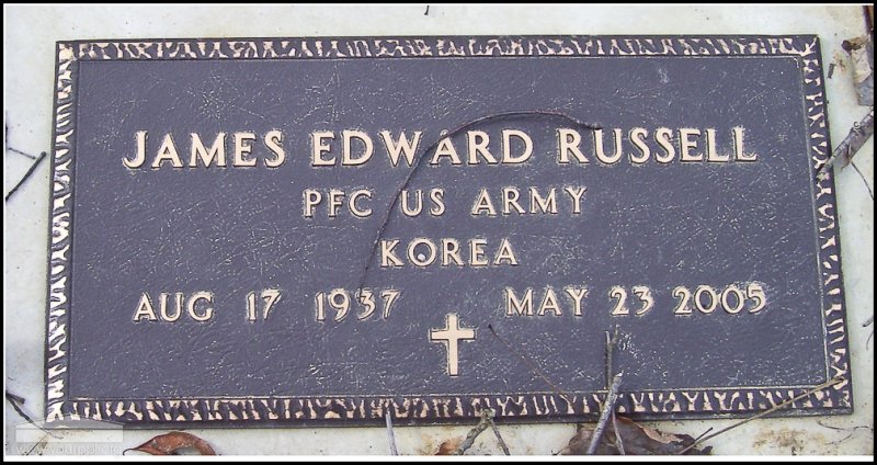 - Photo image of the headstone of James Edward Russell in Scioto Burial Park located in Scioto County.