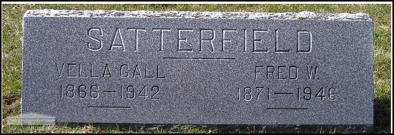 - Photo image of the headstone of Fred W. and Vella Gall Satterfield in Prospect Cemetery located in Highland County.