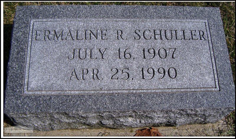 - Photo image of the headstone of Ermaline R. Schuller in Prospect Cemetery located in Highland County.
