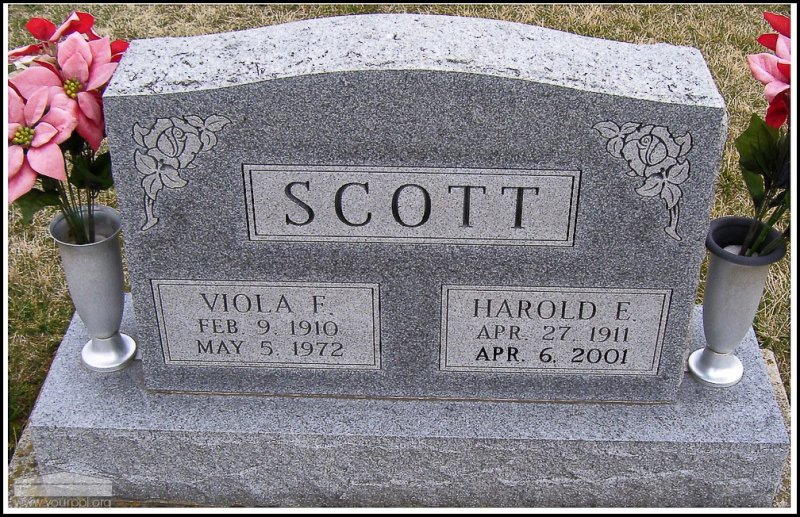 - Photo image of the headstone of Harold and Viola Scott in Village Cemetery located in Adams County. This cemetery is also known as Pumpkin Ridge Cemetery.