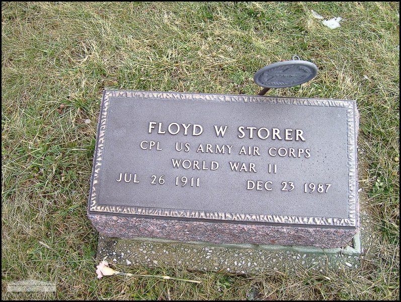- Photo image of the headstone of Floyd W. Storer in Sugartree Ridge Cemetery located in Highland County.