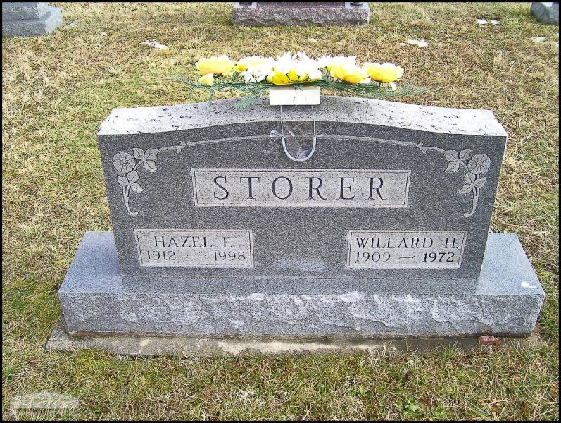 - Photo image of the headstone of Willard H. and Hazel E. Storer in Sugartree Ridge Cemetery located in Highland County.