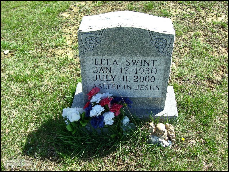 - Photo image of the headstone of Lela Swint in Mt. Joy Cemetery located in Scioto County.