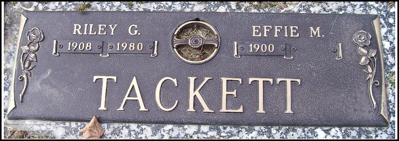 - Photo image of the headstone of Riley G. and Effie M. Tackett in Scioto Burial Park located in Scioto County.