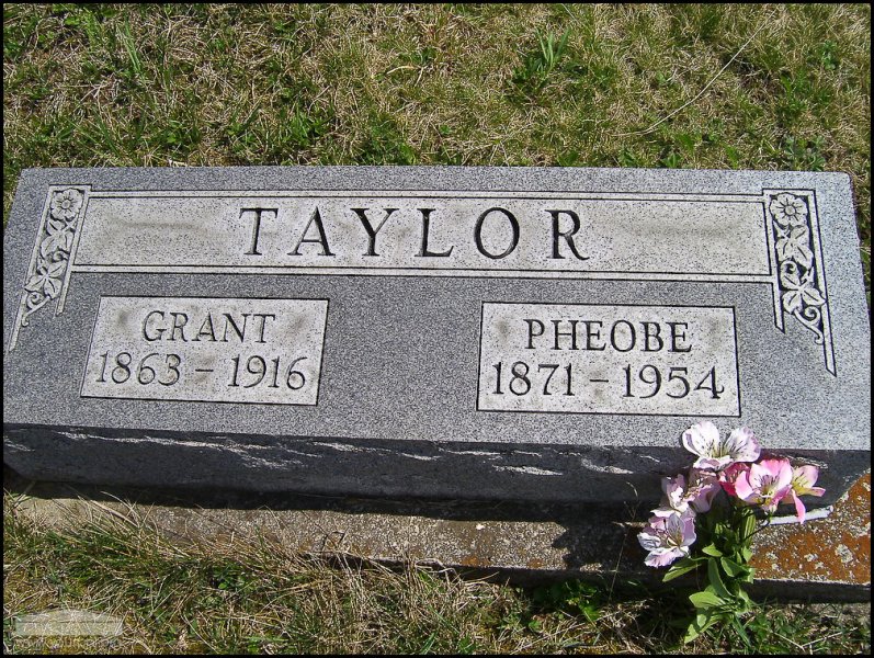 - Photo image of the headstone of Grant and Pheobe Taylor in Mt. Joy Cemetery located in Scioto County.