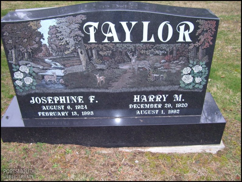 - Photo image of the headstone of Harry M. and Josephine F. Taylor in Garvin Cemetery located in Scioto County.