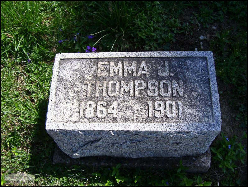 - Photo image of the headstone of Emma J. Thompson in Mt. Joy Cemetery located in Scioto County.