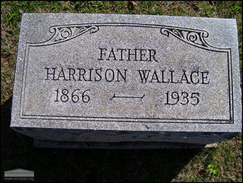 - Photo image of the headstone of Harrison Wallace in Mt. Joy Cemetery located in Scioto County.