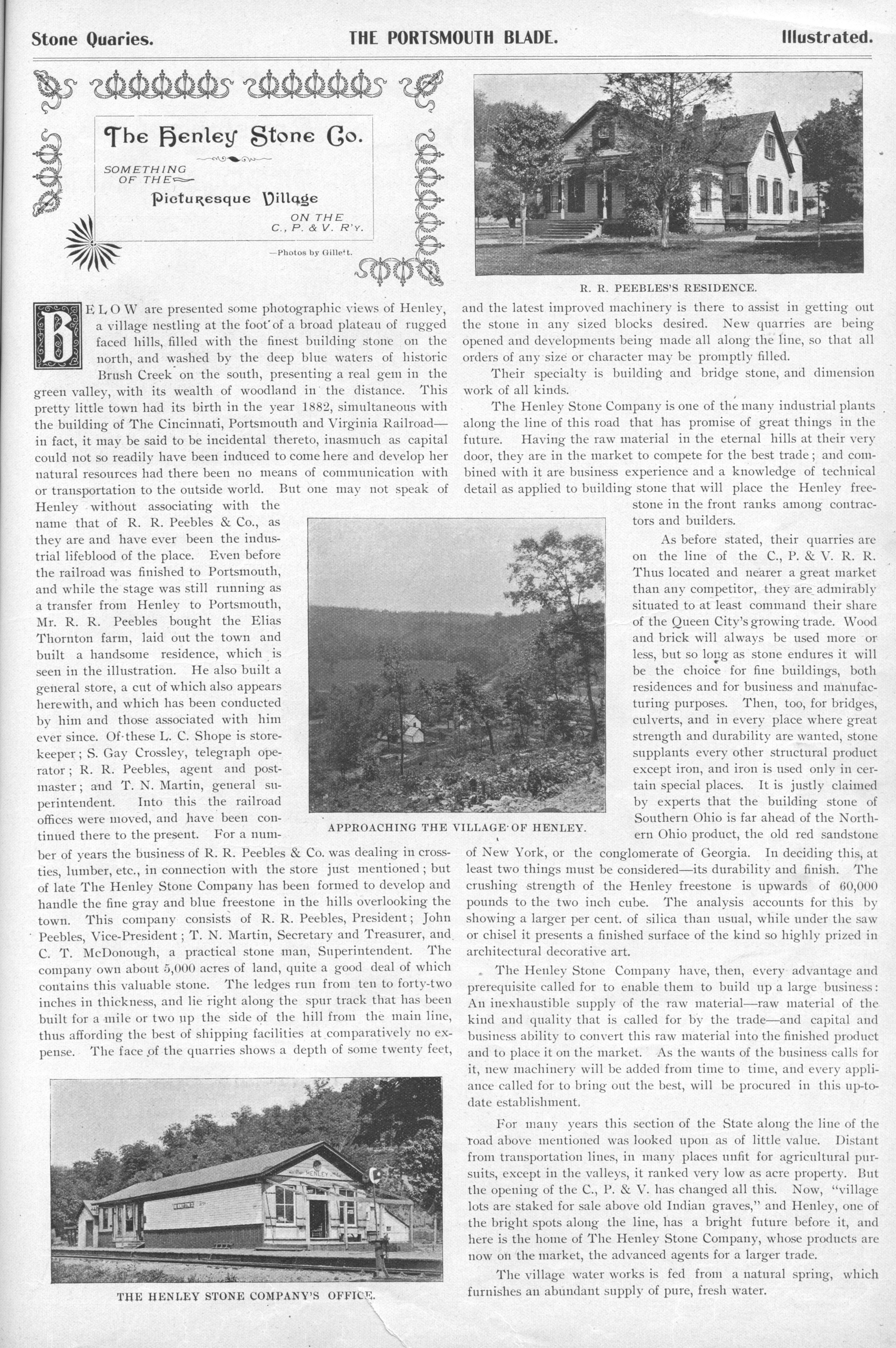 The Portsmouth Blade, “Henley Stone Company,” Scioto County Public Library Local History Digital Collection, accessed December 5, 2025, https://www.sciotolibrary.org/history/items/show/12842.