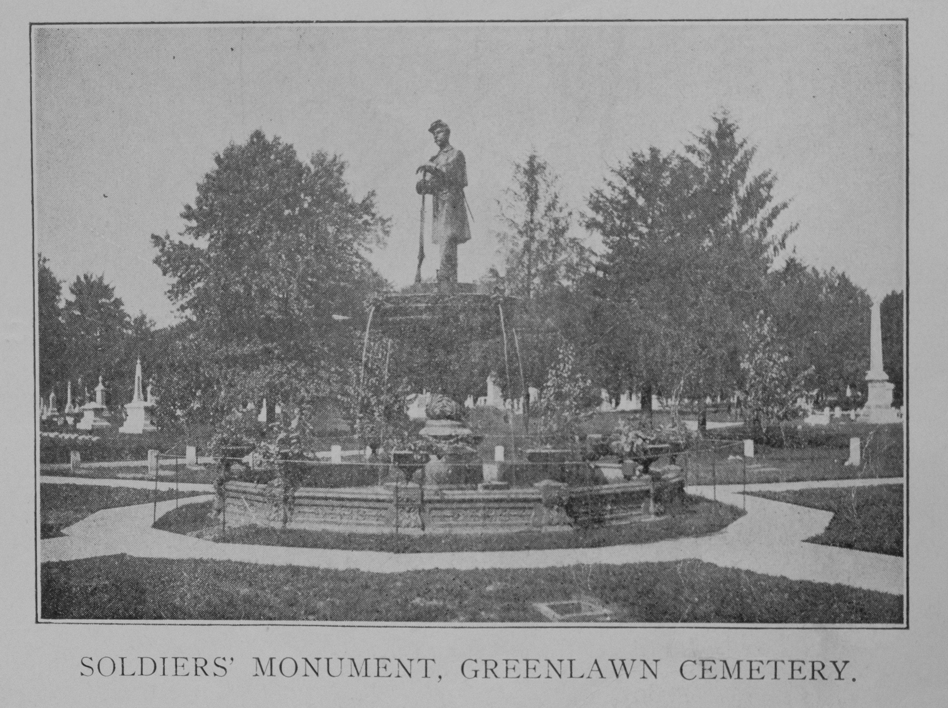 Greenlawn Cemetery is located on Offnere Street. The statue was dedicated to the memory of Civil War soldiers in 1869. - Creator
