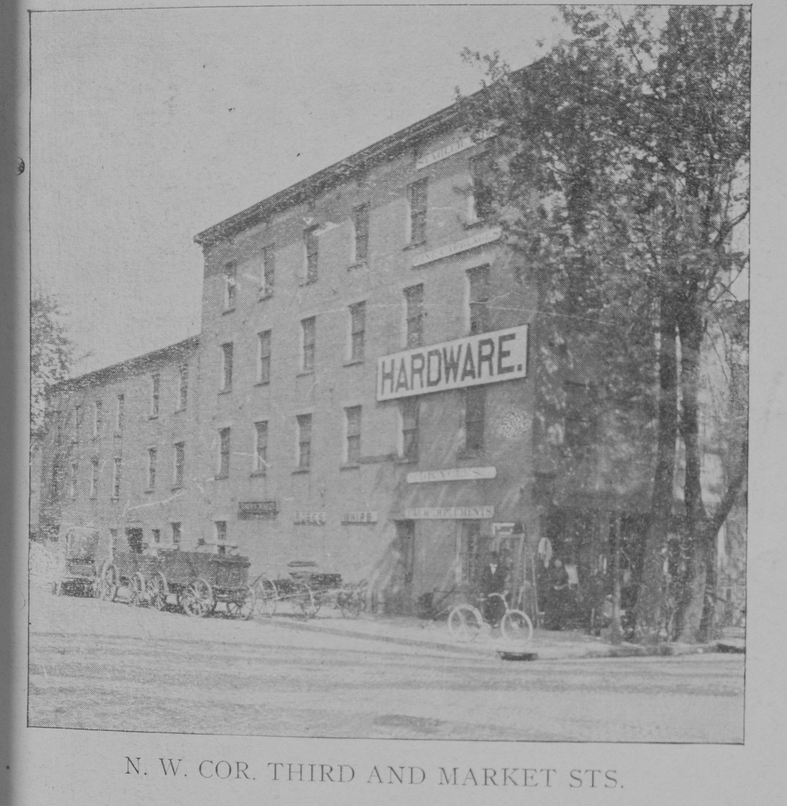Northwest corner of Third (3rd) and Market Streets. Stahler Hardware located at 301 West Market 1899-1901 - Creator