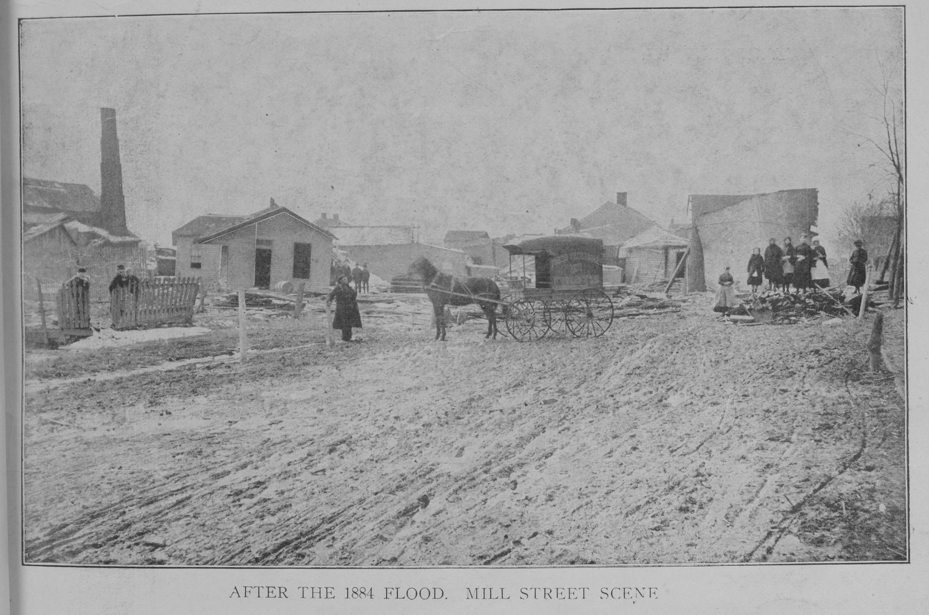 Henry A. Lorberg, “After the 1884 Flood, Mill Street Scene,” Scioto County Public Library Local History Digital Collection, accessed December 14, 2025, https://www.sciotolibrary.org/history/items/show/13225.