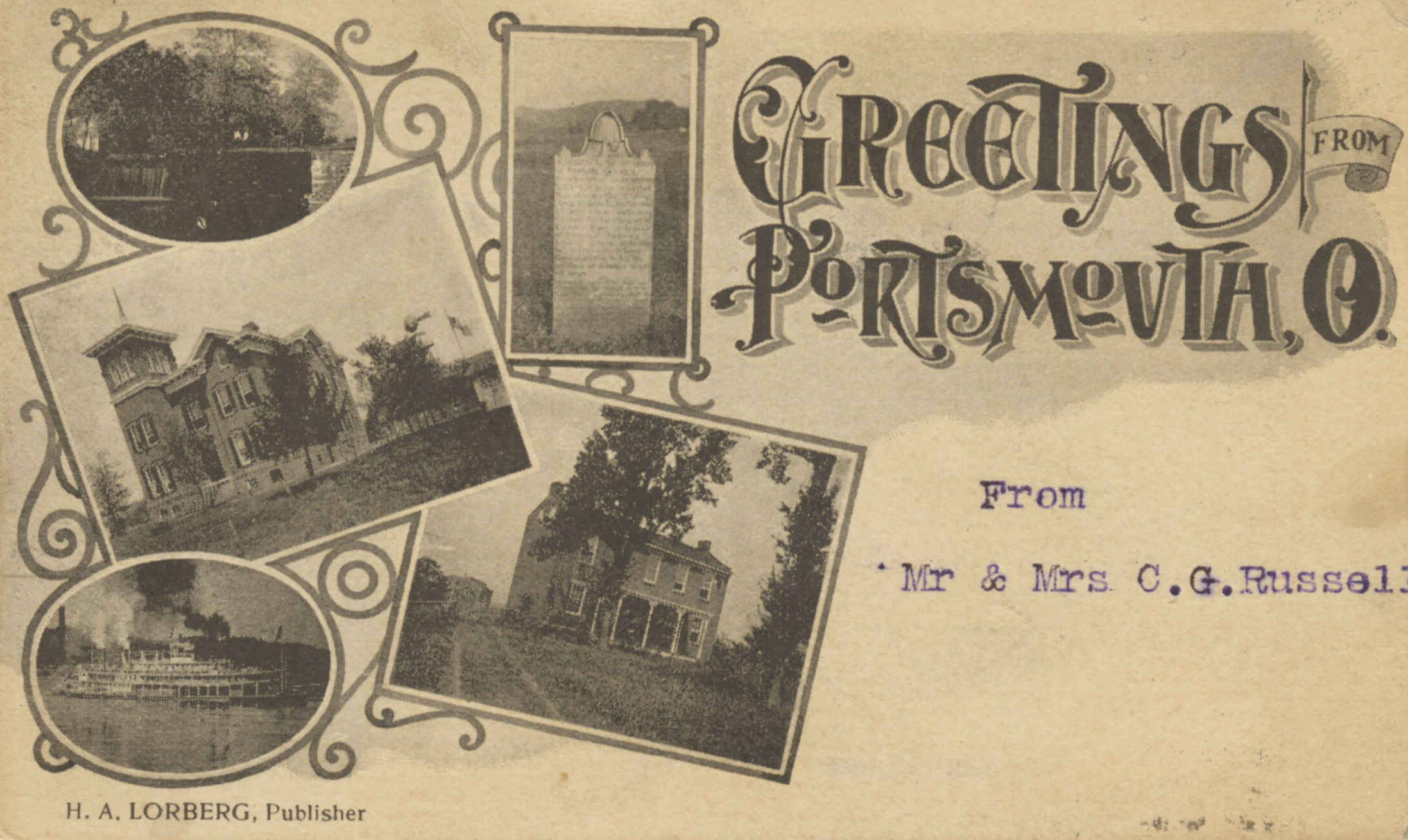 H. A. Lorberg, Publisher, “Greetings from Portsmouth, Ohio,” Scioto County Public Library Local History Digital Collection, accessed December 14, 2025, https://www.sciotolibrary.org/history/items/show/13525.