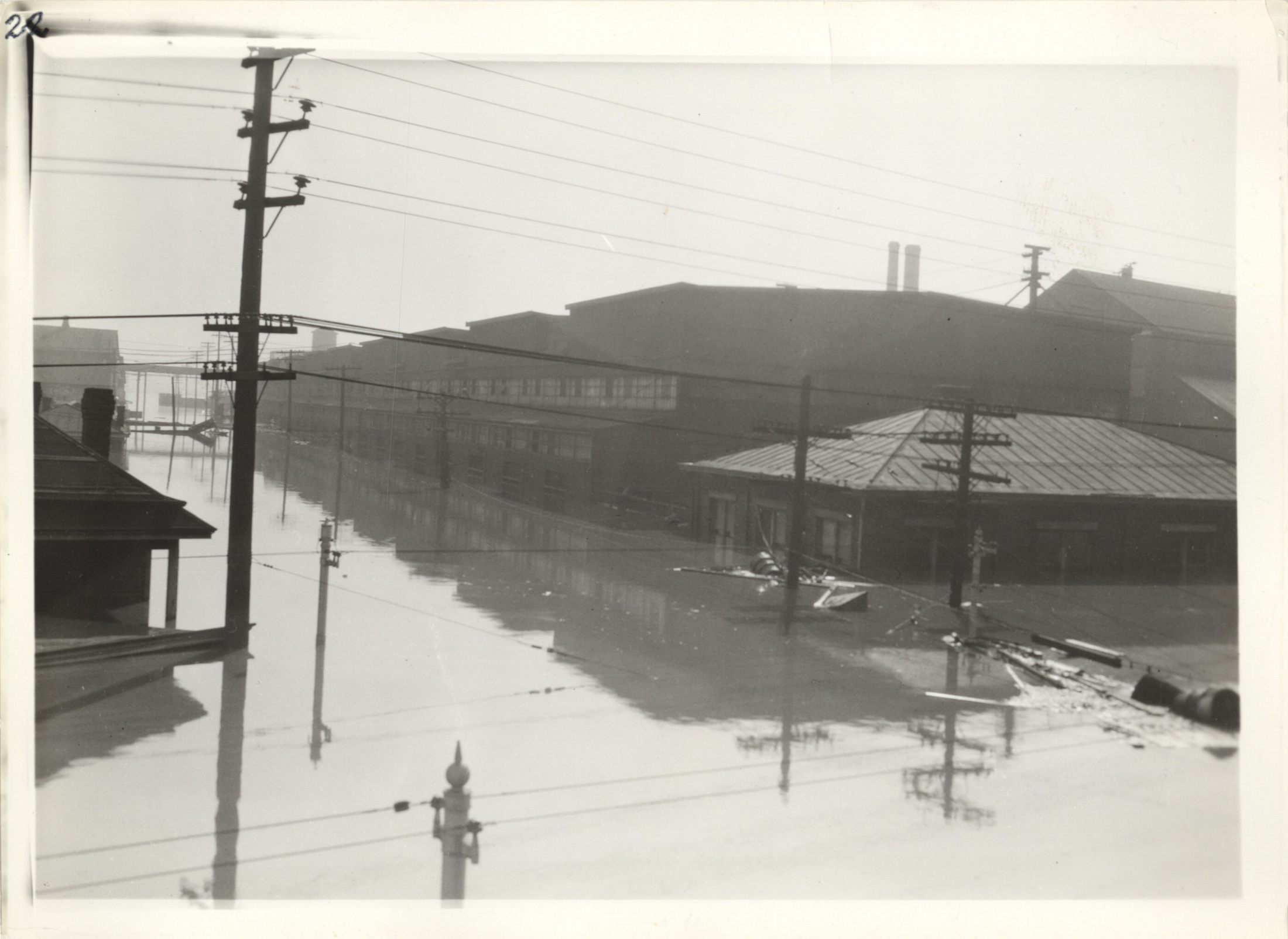 - Black & white photo looking southwest-West Avenue-Rod & Wire Mill Office of the New Boston steel mill.