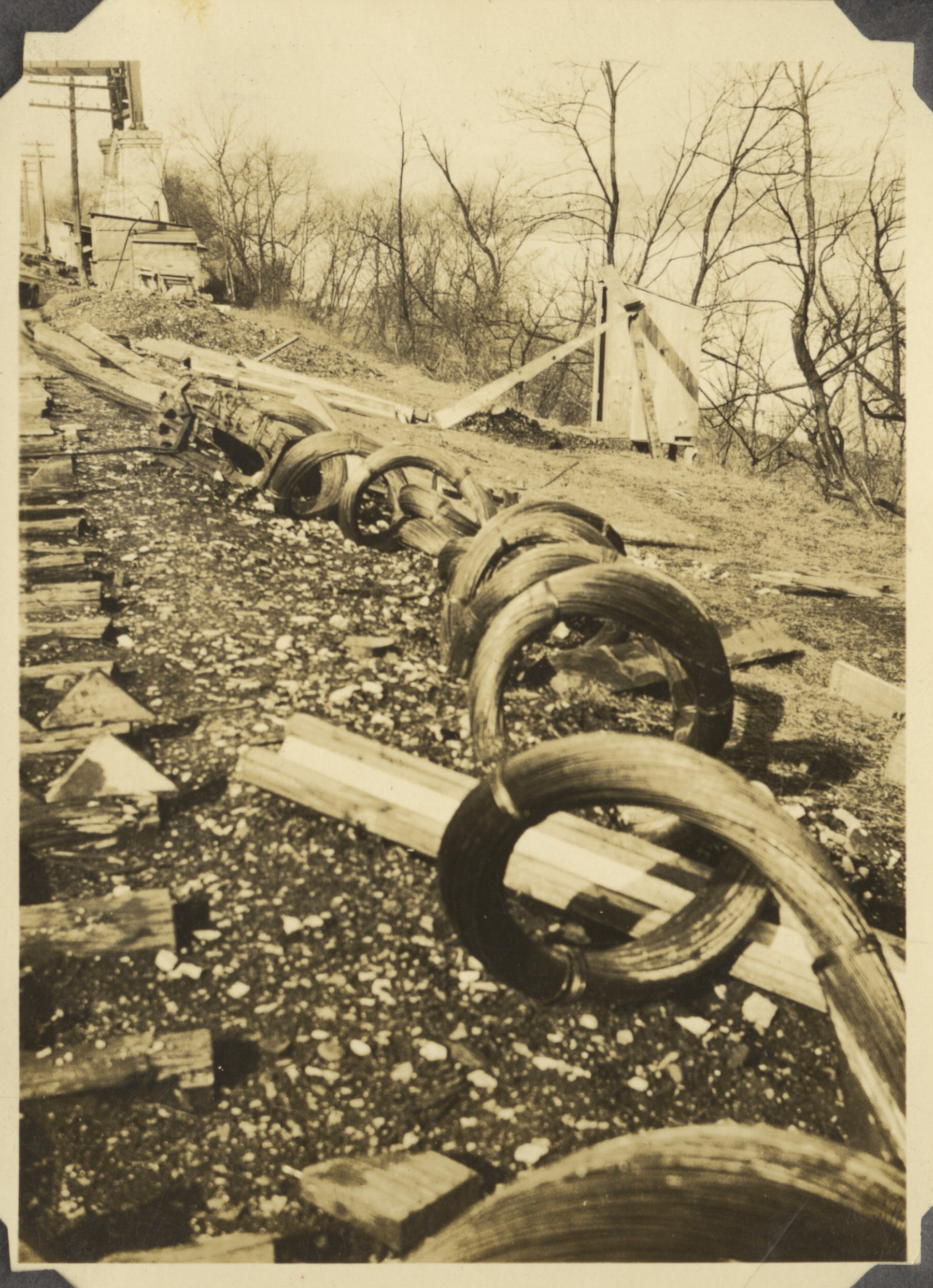 - Construction of the Grant Bridge, along the railroad tracks, Kentucky side