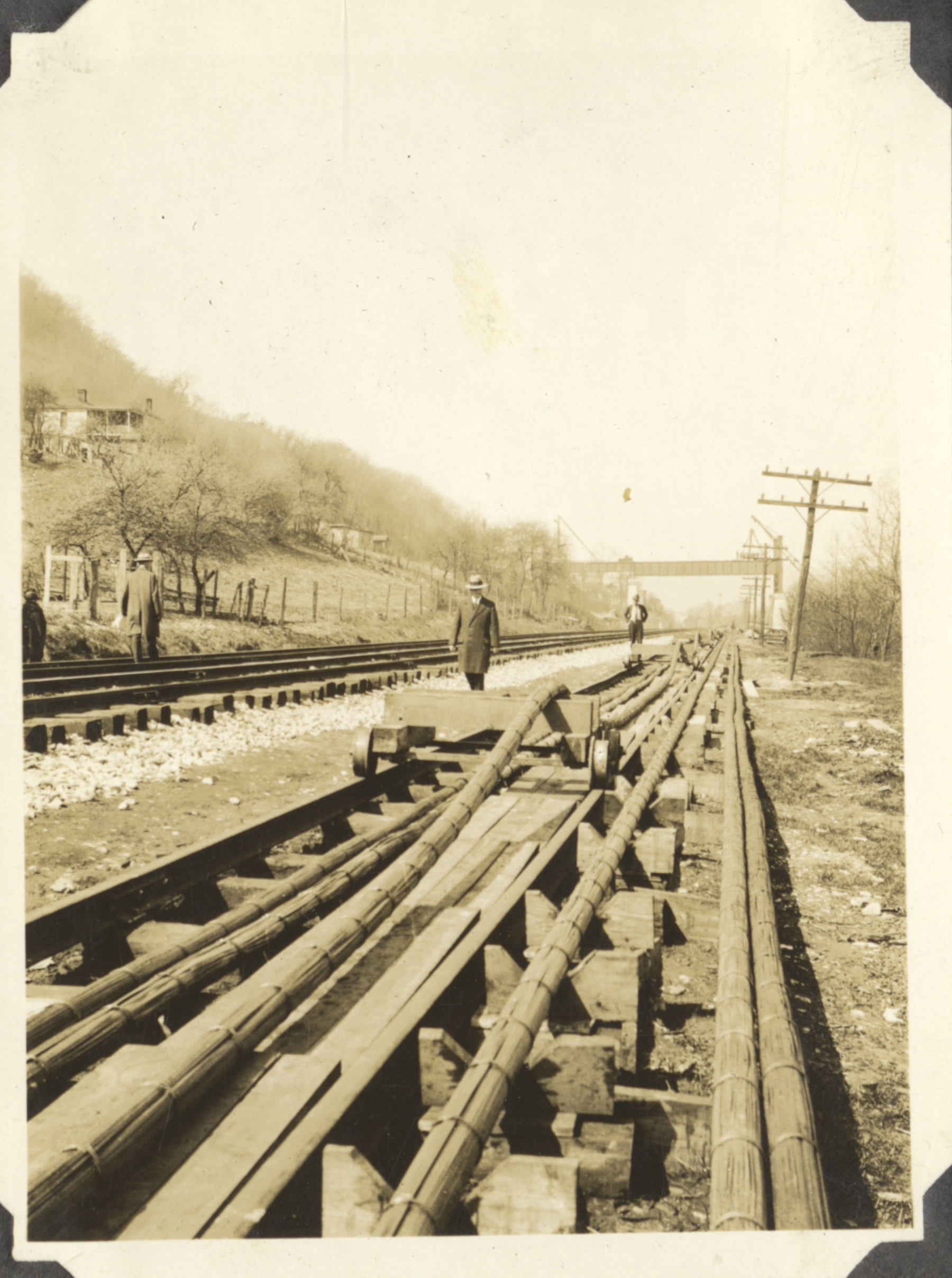 - Construction of the Grant Bridge, railroad tracks on the Kentucky side.