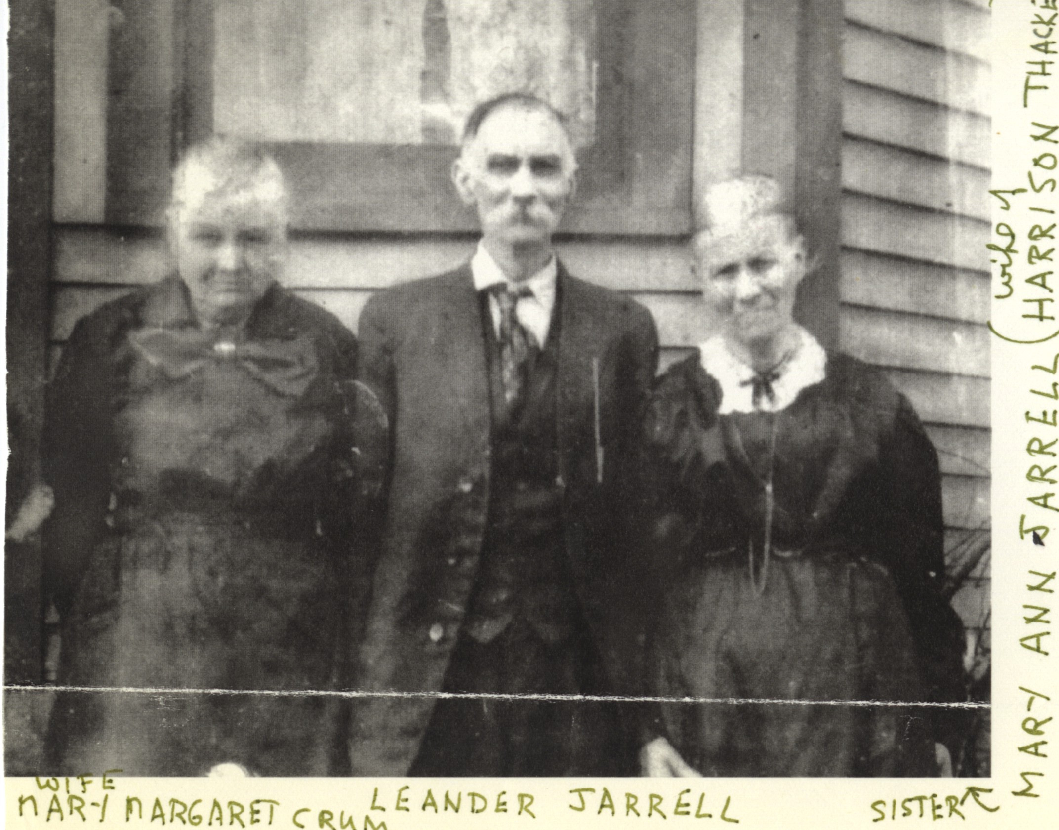 Written around the front: Leander Jarrell, wife, Mary Margaret Crum, sister, Mary Ann Jarrell (wife of Harrison Thacker) - Creator