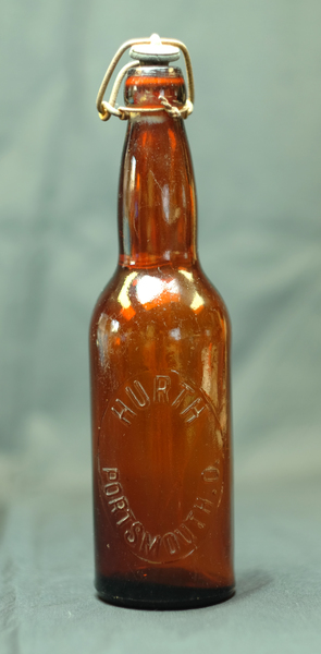 - Amber glass bottle embossed with "Hurth, Portsmouth, Ohio". Aged rubber stopper with rusted metal tie wire and wire lever to secure-called Lightning closure. Adolph Hurth Retail Liquors business was located at both 210 Market Street and 224 Chillicothe Street in the 1906 Portsmouth City Directory.