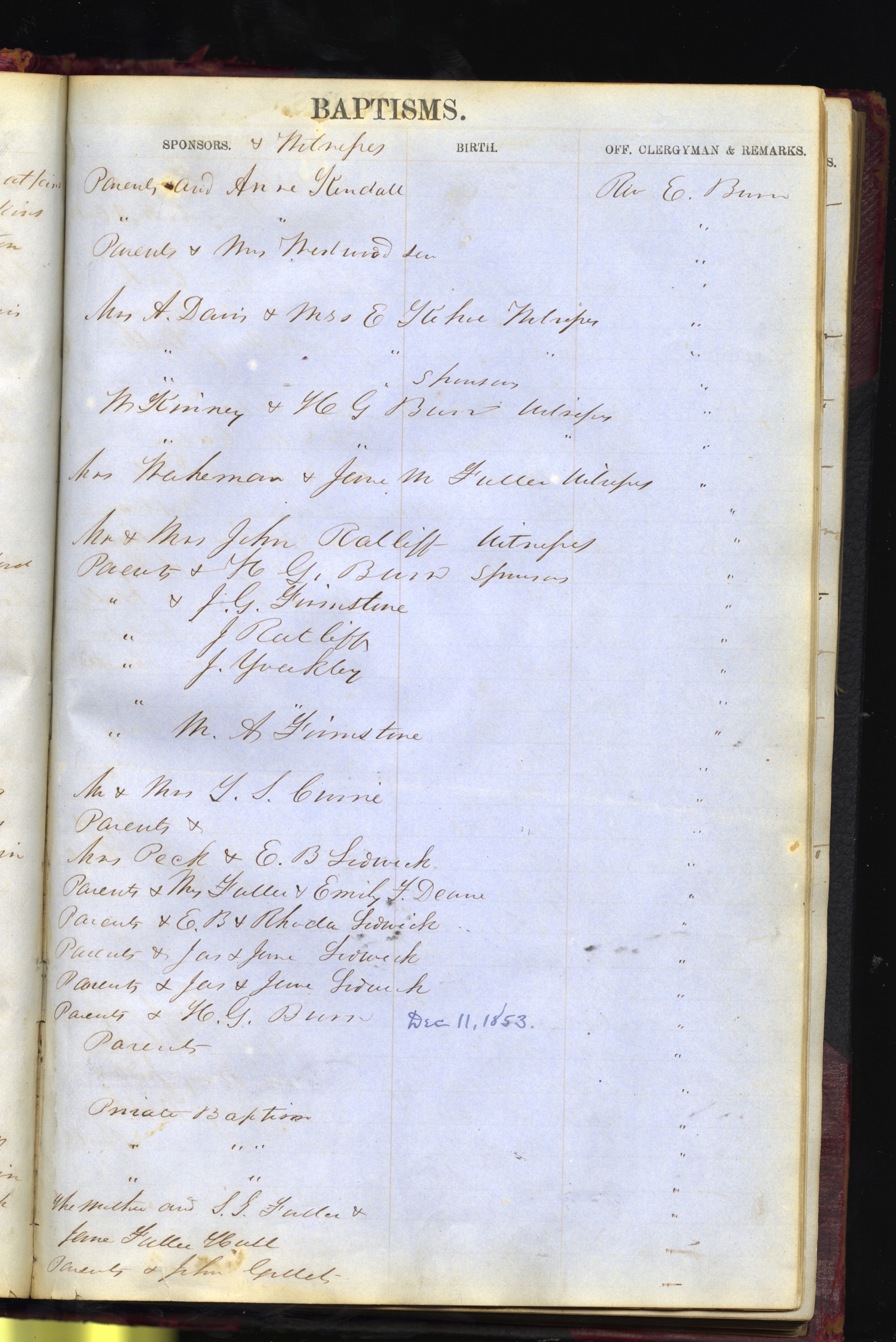 - scan of cursive written page of the Parish register for All Saints Church, Portsmouth, Ohio. Listed are the baptisms.