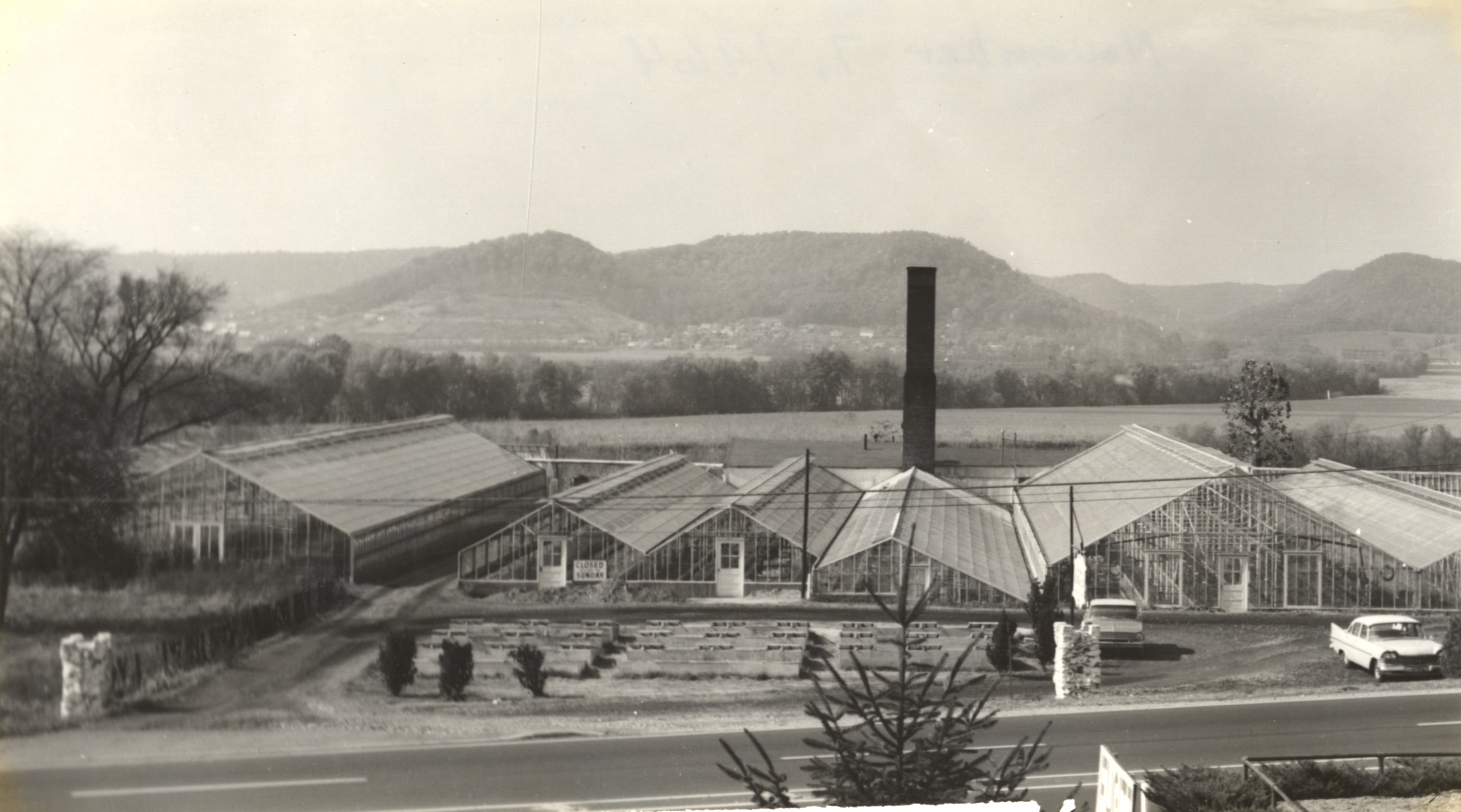 - Black & white photograph. Herms Floral Company Greenhouses located on Scioto Trail, US Rt 23, north of Portsmouth, looking west.