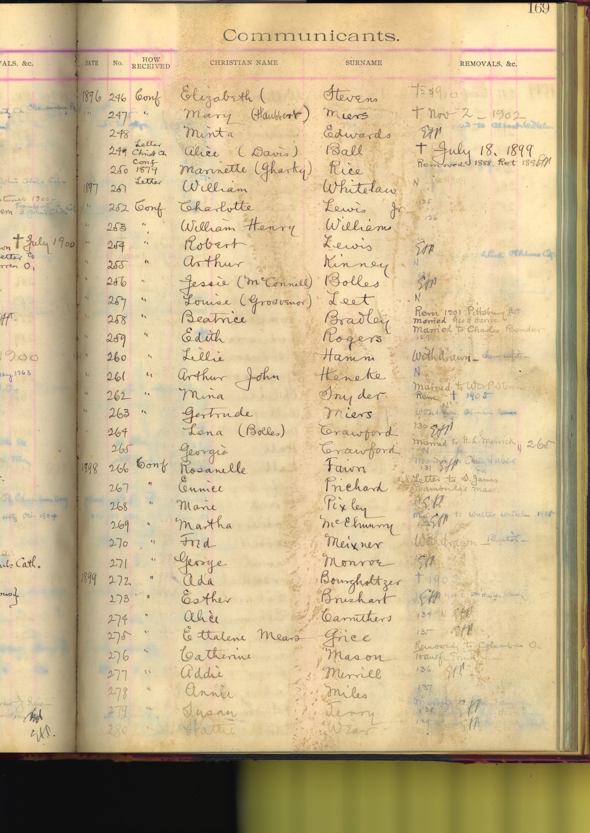 - scan of page from All Saints Church Ledger. Shown is typed title at top of page "communicants" with handwritten information listed in rows beneath.