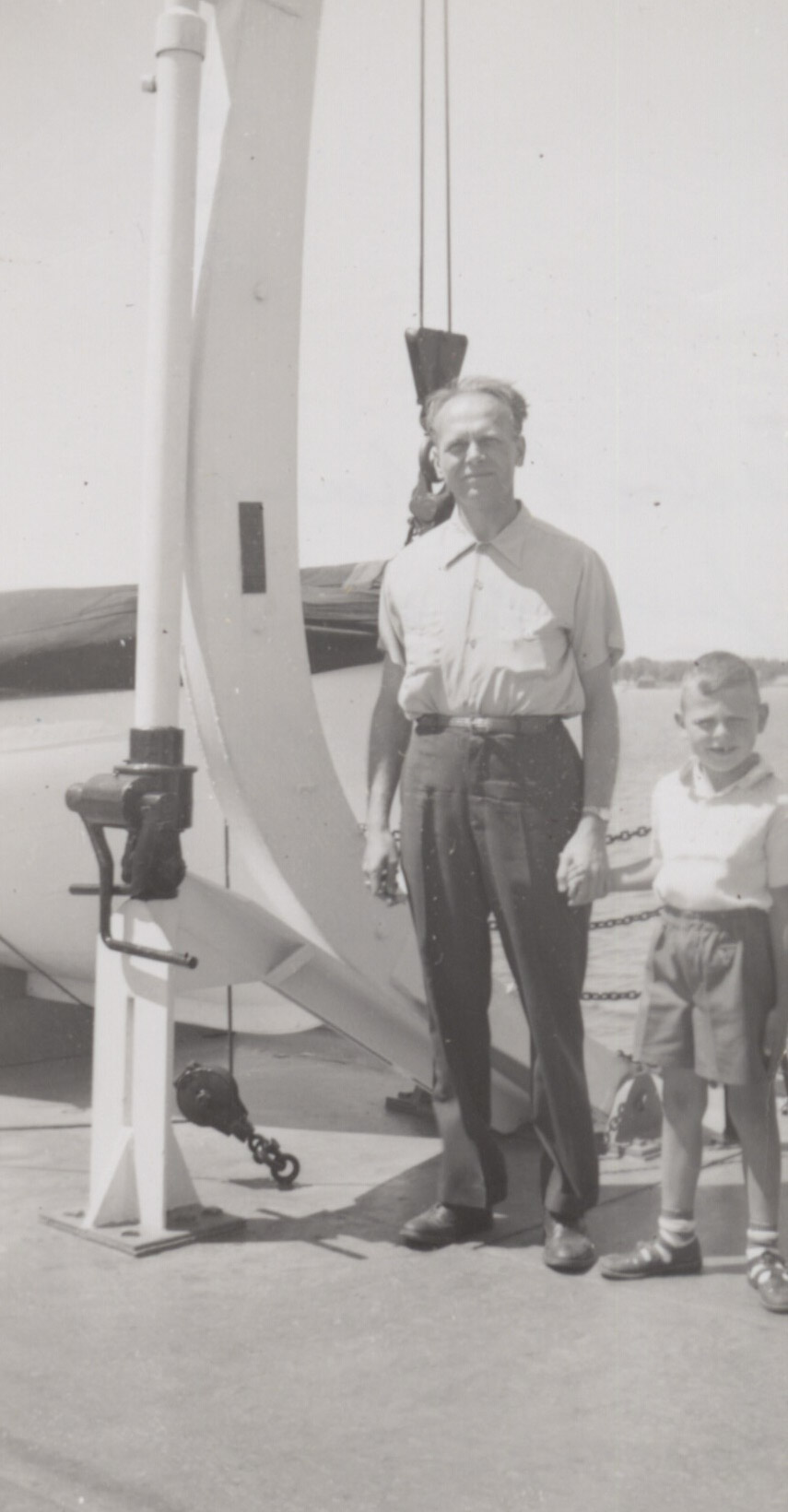 On back: "Charlie & Johnny on ferry crossing straits of Mackinac, July 26, 1948".