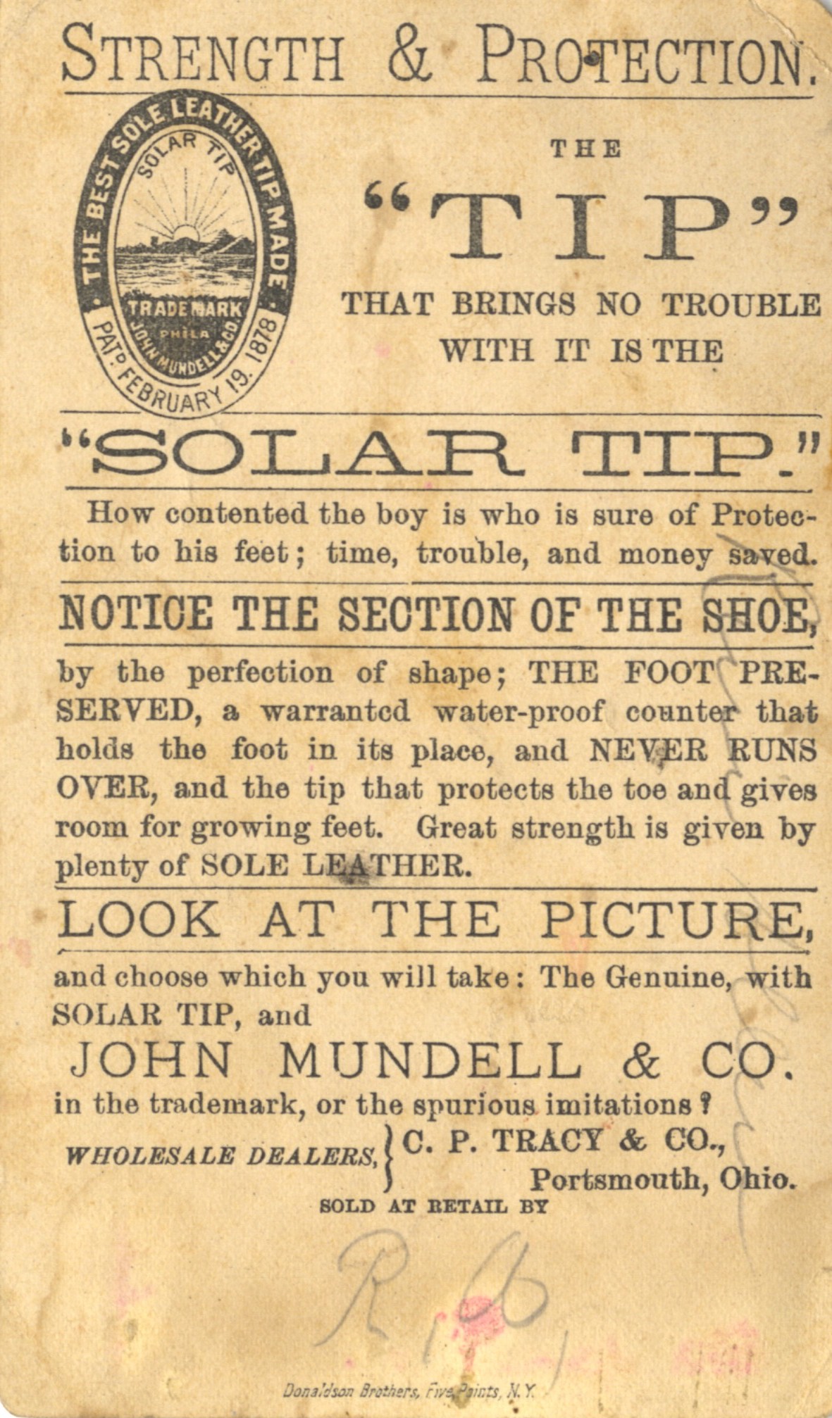 Donaldson Brothers, Five Points, N.Y., “C.P. Tracy & Co. Advertisement Card,” Scioto County Public Library Local History Digital Collection, accessed December 5, 2025, https://www.sciotolibrary.org/history/items/show/17197.