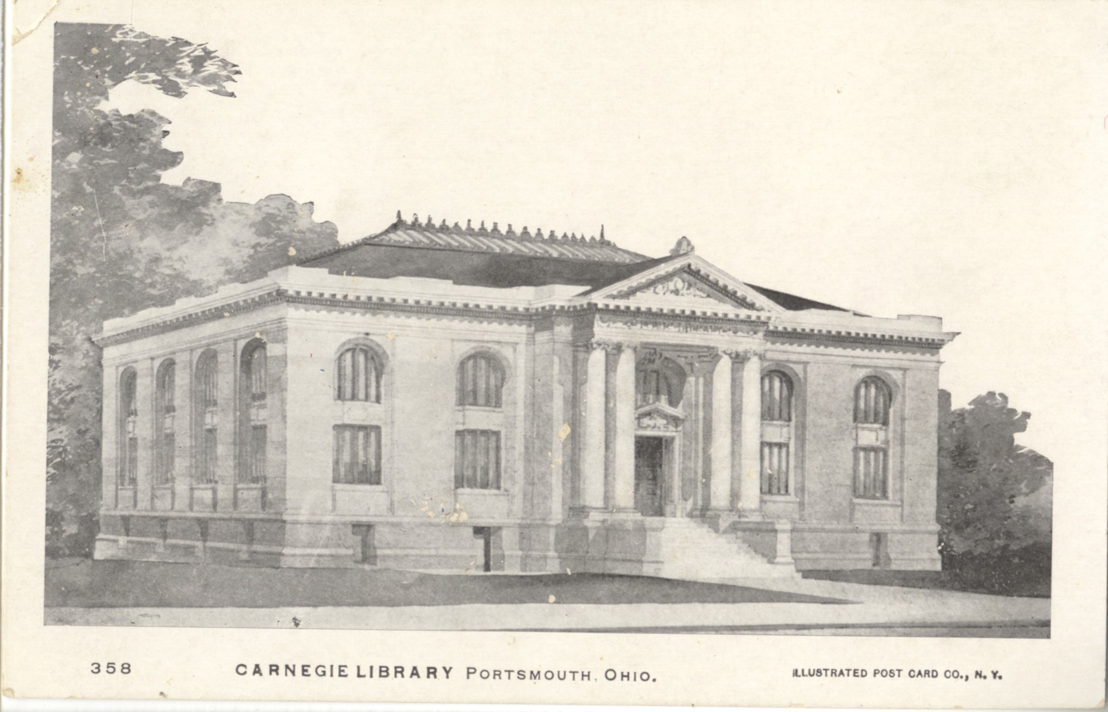 Illustrated Postcard Company, New York, “Carnegie Library, Portsmouth, Ohio,” Scioto County Public Library Local History Digital Collection, accessed December 17, 2025, https://www.sciotolibrary.org/history/items/show/17551.