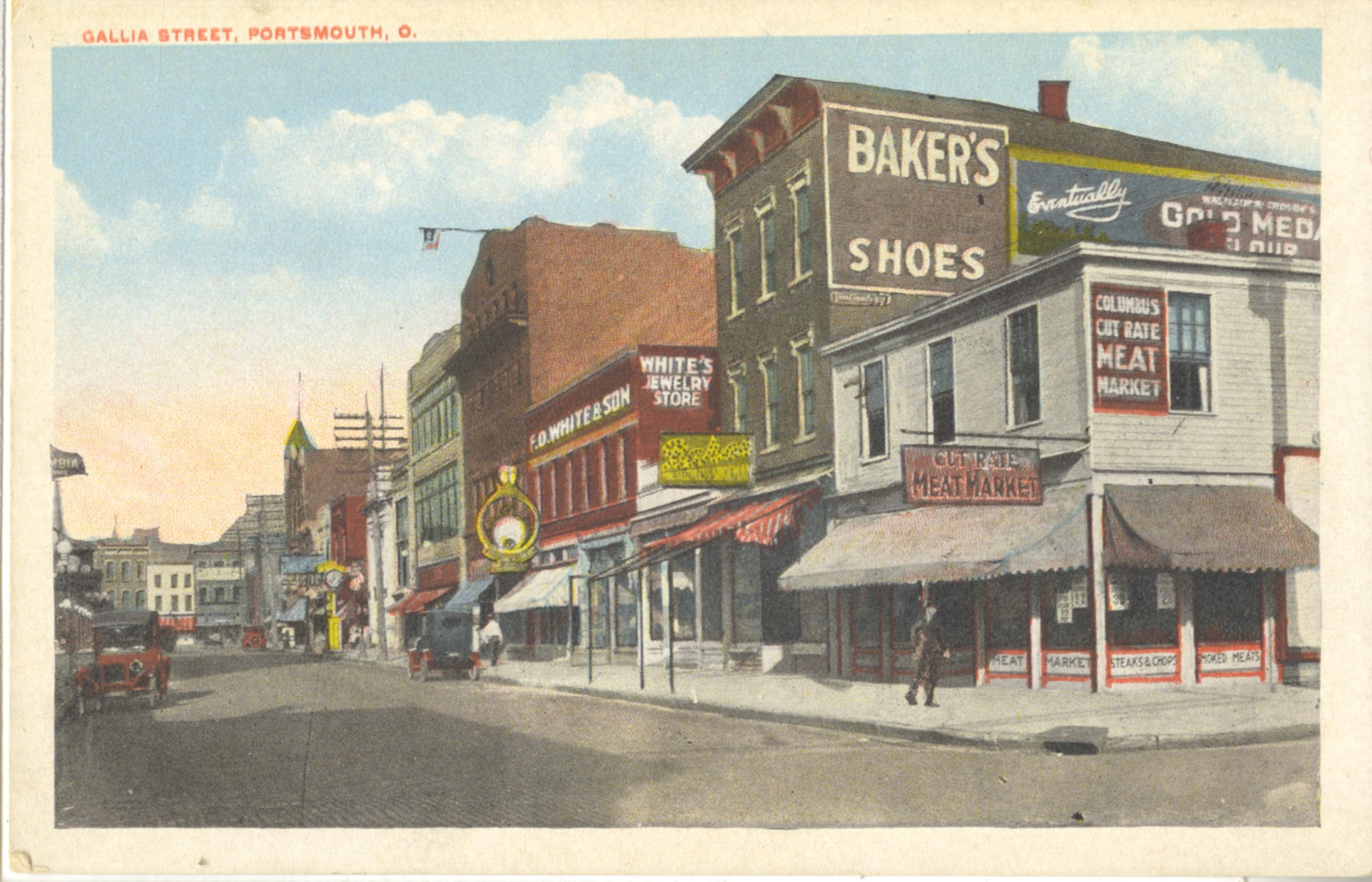 - Colorized photo image of Gallia Street looking west toward Chillicothe Street. In the 1920 Portsmouth City Directory, Frank J Baker's Shoe Store was at 845 Gallia Street.