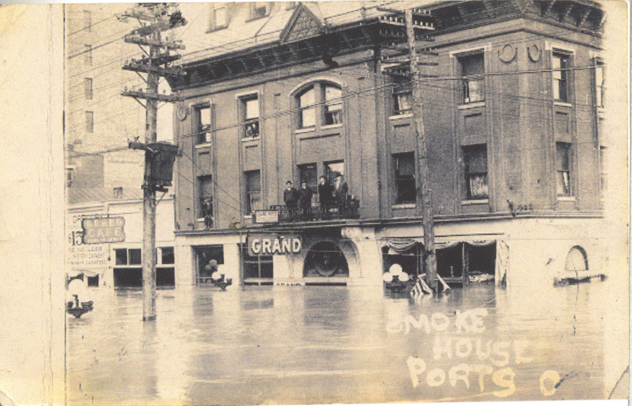 - Black & white photo image of the Grand Opera Building in the 1913 flood. It was built in 1895 at the Corner of Fourth and Chillicothe Streets