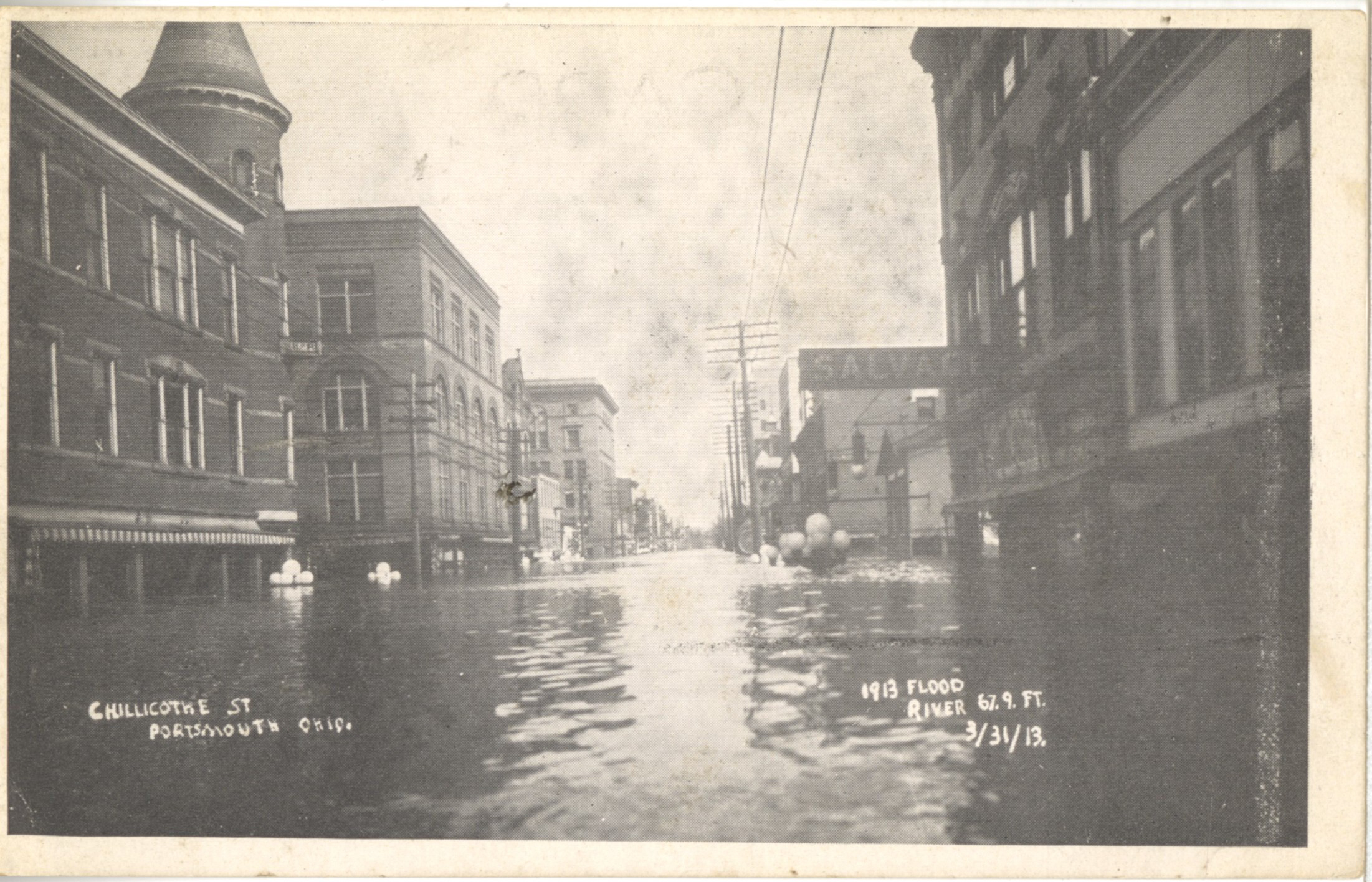 E.T, Bennett, Columbus, Ohio, “Chillicothe Street, 1913 Flood,” Scioto County Public Library Local History Digital Collection, accessed January 24, 2026, https://www.sciotolibrary.org/history/items/show/17632.