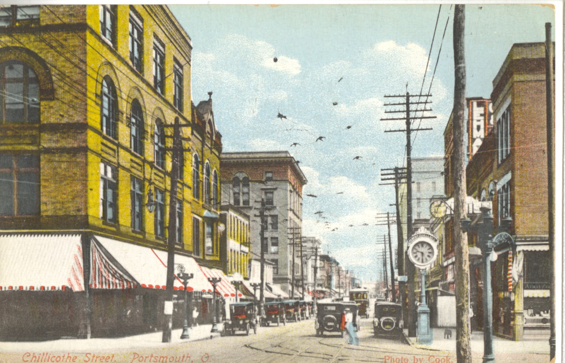 Photo by Cook, H.A. Lorberg, Pub., “Chillicothe Street, Portsmouth,Ohio,” Scioto County Public Library Local History Digital Collection, accessed December 12, 2025, https://www.sciotolibrary.org/history/items/show/17636.