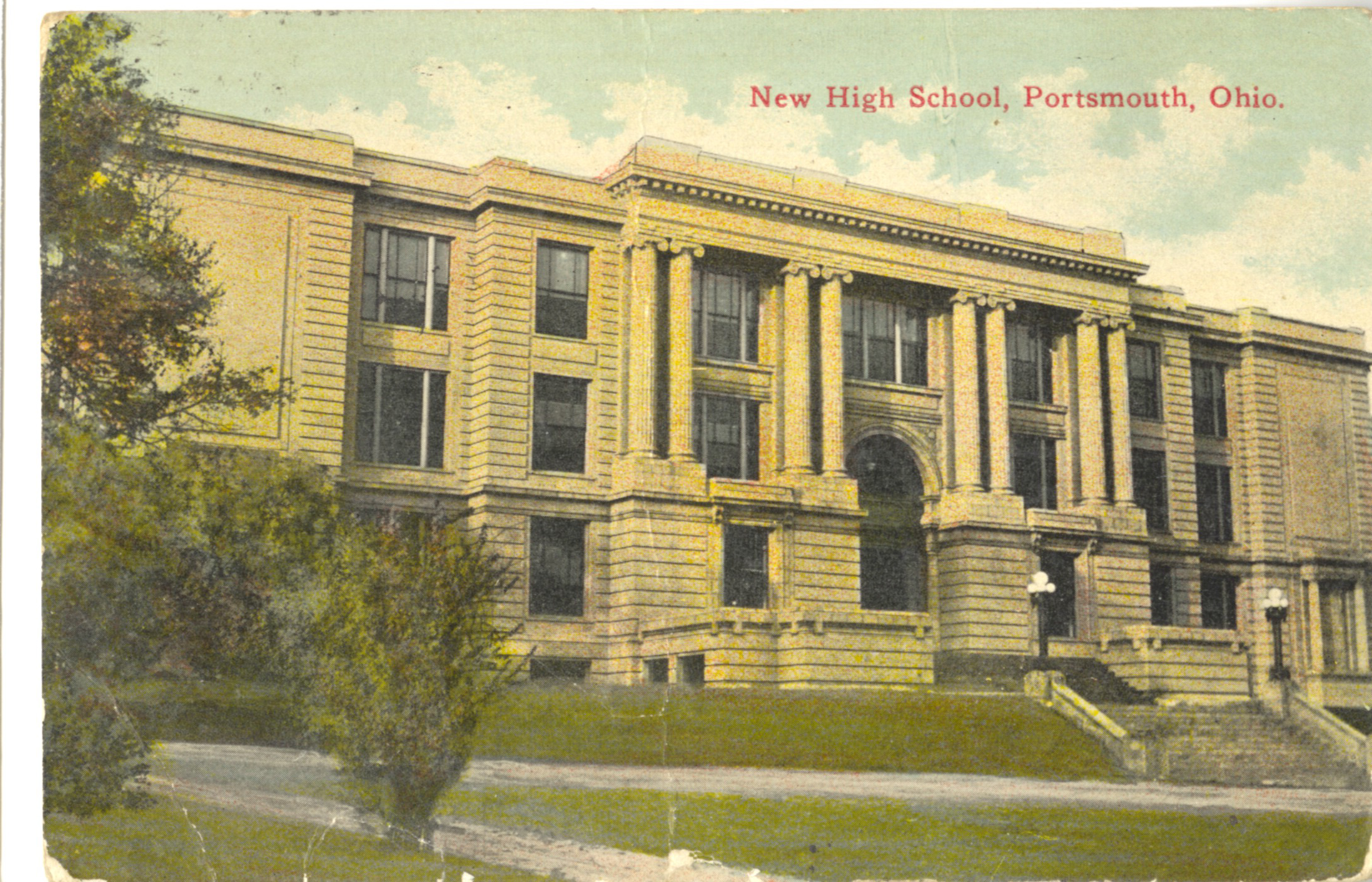 - Colorized photo image of the new High School in Portsmouth. The building was completed in 1912, and an addition was added in 1923. Additions were also made in 1941 and 1964.
