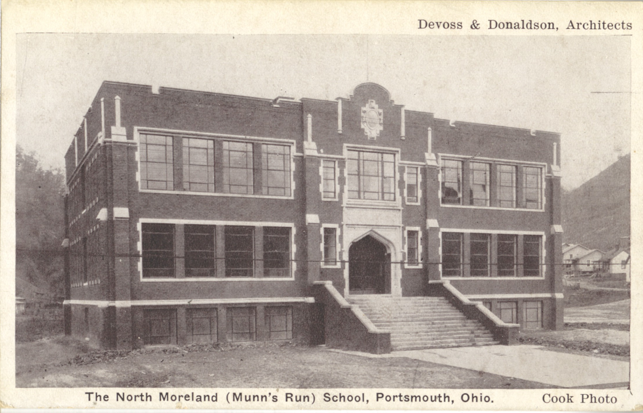 - Black and white photo image of the North Moreland School. The building was built in 1925 at the corner of Scherer Hollow and Minford Roads. The school closed in 1982 and was purchased by the Apostolic Temple of Christ in February of 1984.