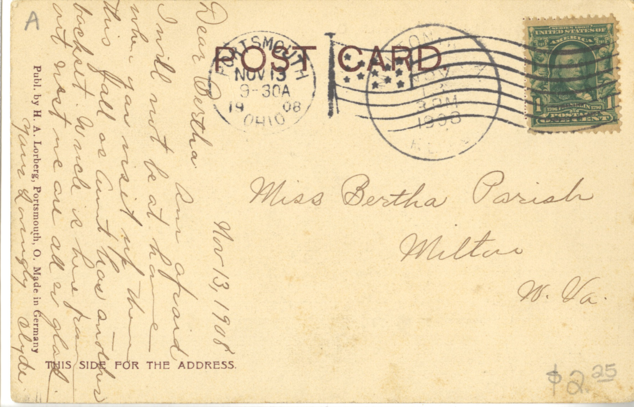 H. A. Lorberg, publisher, Portsmouth, Scioto County, Ohio. Made in Germany. , “View In Lakeside: Millbrook, Portsmouth, O.,” Scioto County Public Library Local History Digital Collection, accessed December 14, 2025, https://www.sciotolibrary.org/history/items/show/17918.