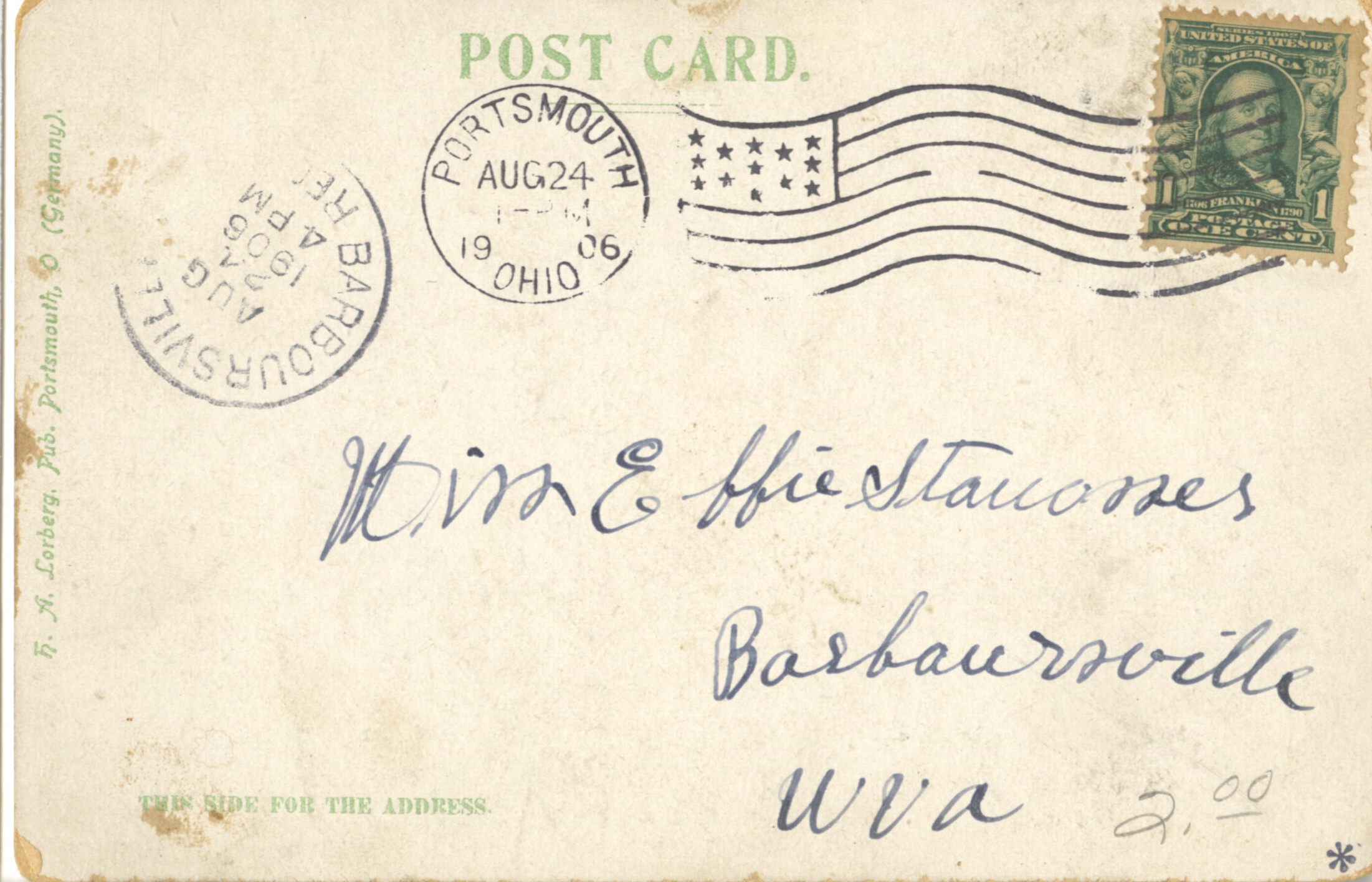 H. A. Lorberg, publisher. Made in Germany. , “Suburban Scene, Portsmouth, O.,” Scioto County Public Library Local History Digital Collection, accessed December 18, 2025, https://sciotolibrary.org/history/items/show/17930.