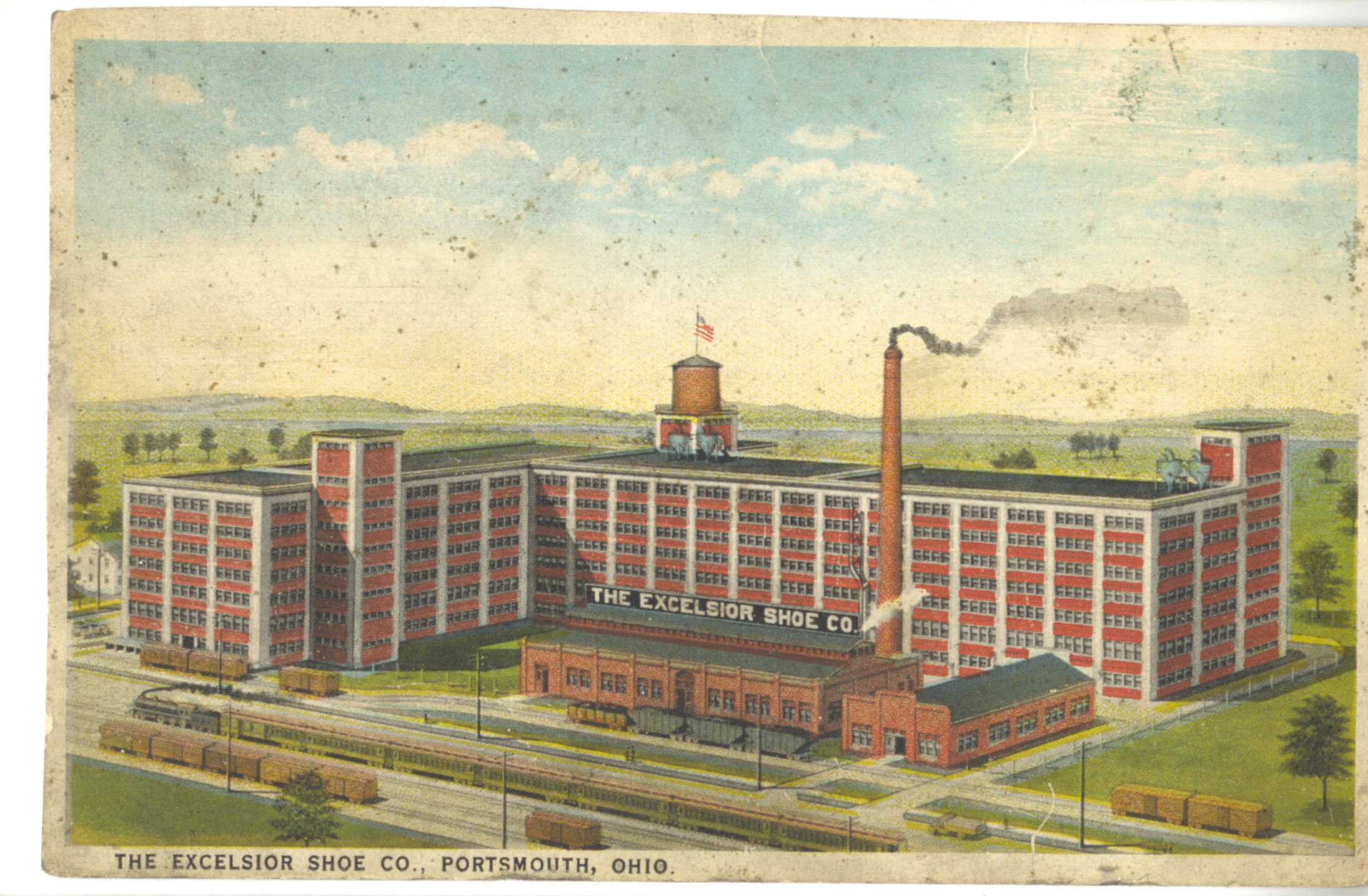 - Colorized image of the Excelsior Shoe Company located at the southwest corner of Gallia Street and Campbell Avenue. The company was started in 1889, in 1893 it moved to Third (3rd) and Gay Streets and in 1913 this factory was built at Gallia and Campbell. Williams Manufacturing purchased the building in 1935.