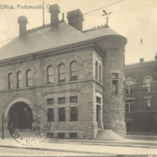 - Black and white photo image of the old stone Post Office in Portsmouth at the corner of Chillicothe and Gallia Streets. The post office was completed in 1891, expanded in 1914, closed in 1936, and razed in 1956 for the construction of a five story Montgomery-Ward Department Store.