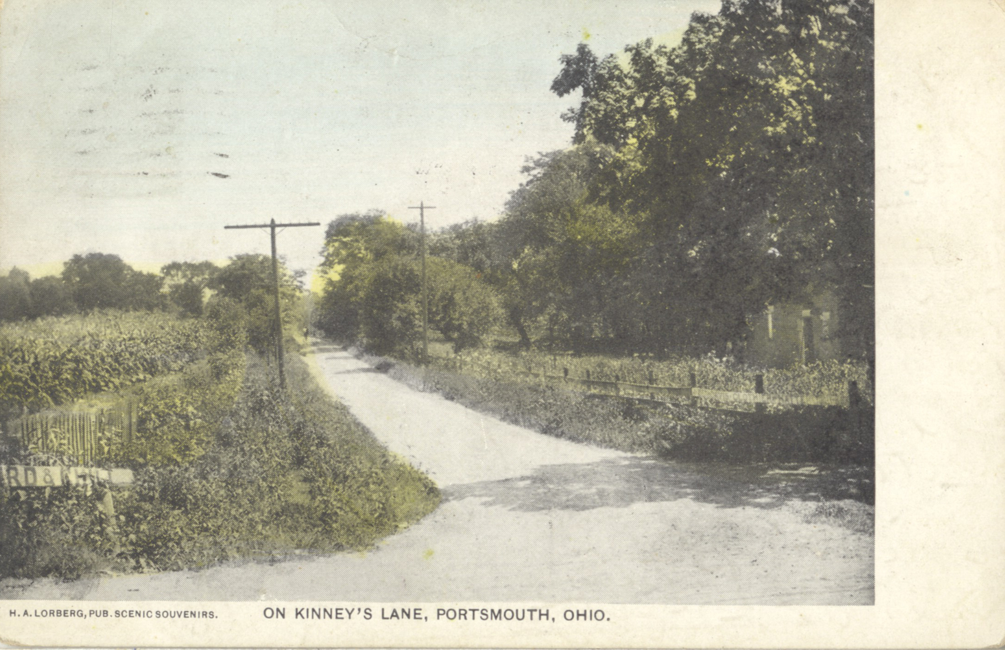 H. A. Lorberg, Publisher, “On Kinney's Lane, Portsmouth, Ohio,” Scioto County Public Library Local History Digital Collection, accessed December 14, 2025, https://www.sciotolibrary.org/history/items/show/18197.