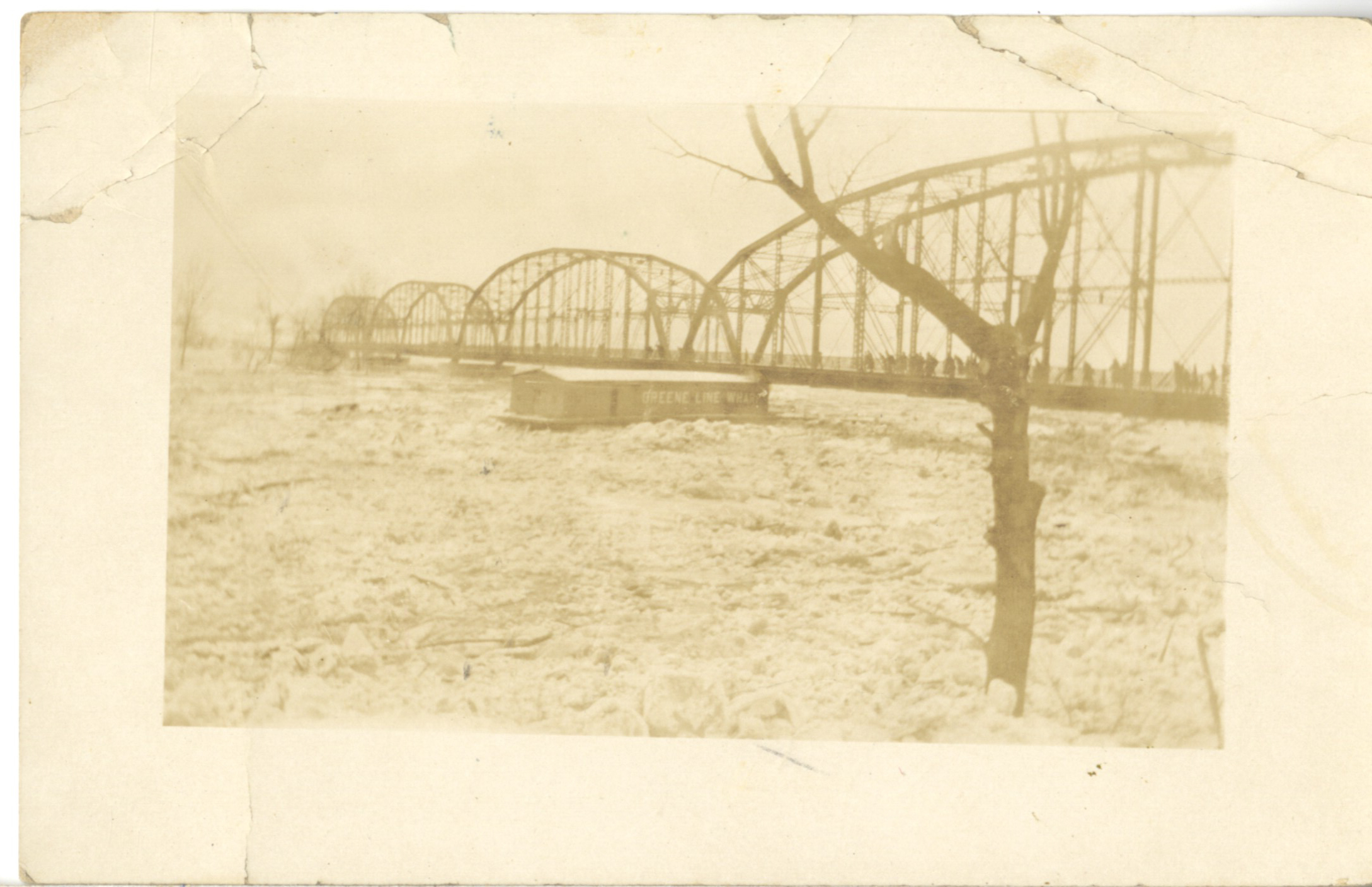 - Black and white photo image of the Second (2nd) Street Scioto Bridge over the frozen Scioto River. This bridge, the sixth(6th) bridge at this site, opened in 1915 and was used until 1997. The 1913 flood washed out the previous Scioto Bridge.
