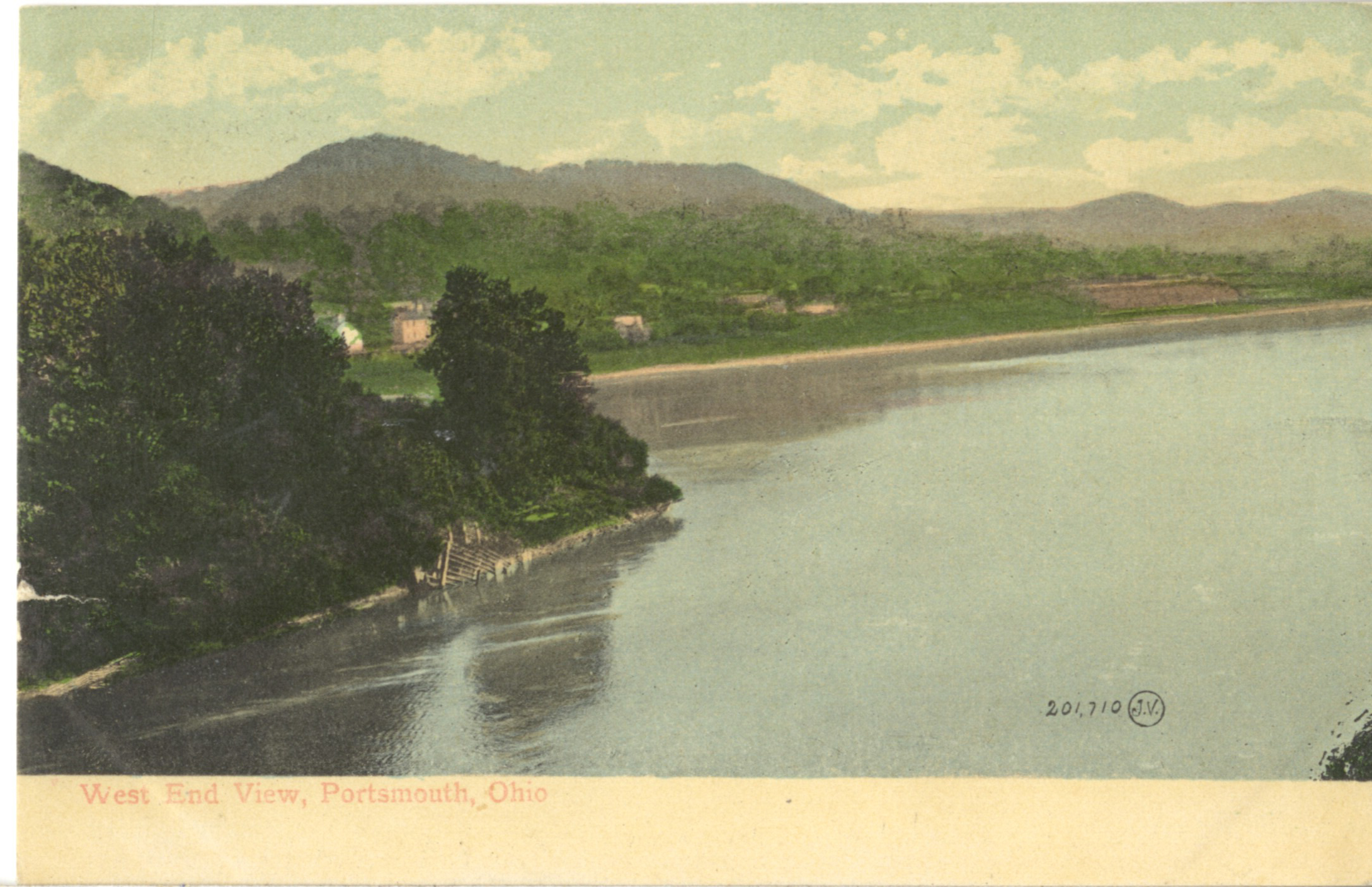 Published by H. A. Lorberg, printed in Great Britain, “West End View, Portsmouth, Ohio,” Scioto County Public Library Local History Digital Collection, accessed December 16, 2025, https://www.sciotolibrary.org/history/items/show/18243.