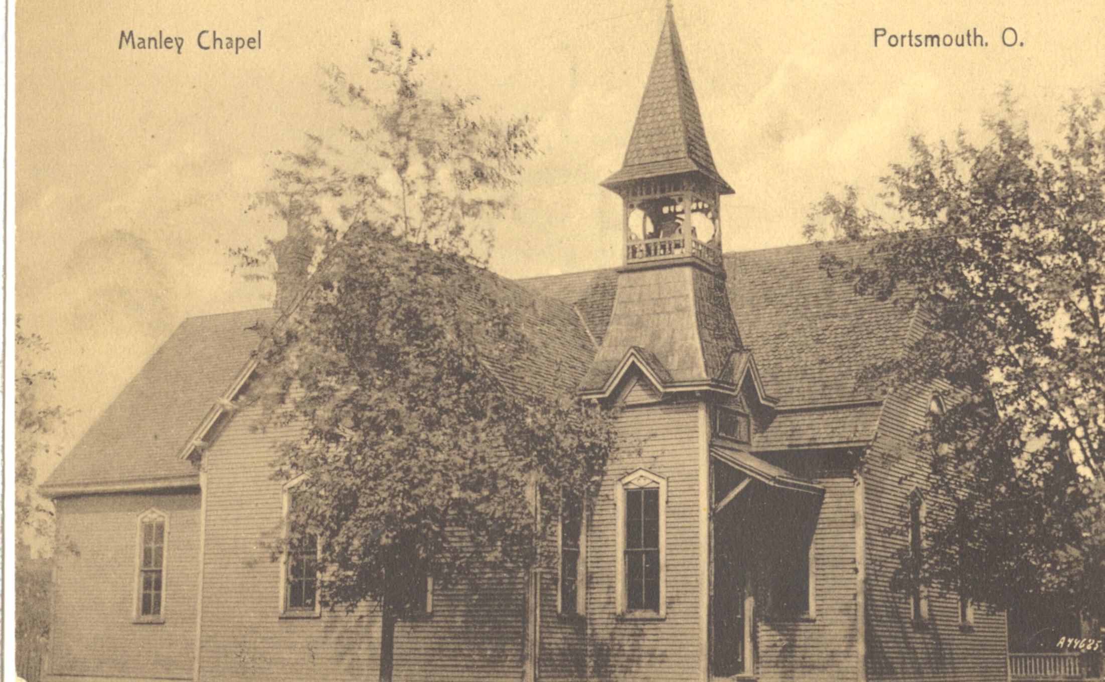 Published by H. A. Lorberg, made in Germany, “Manley Chapel, Portsmouth, O.,” Scioto County Public Library Local History Digital Collection, accessed December 16, 2025, https://www.sciotolibrary.org/history/items/show/18387.
