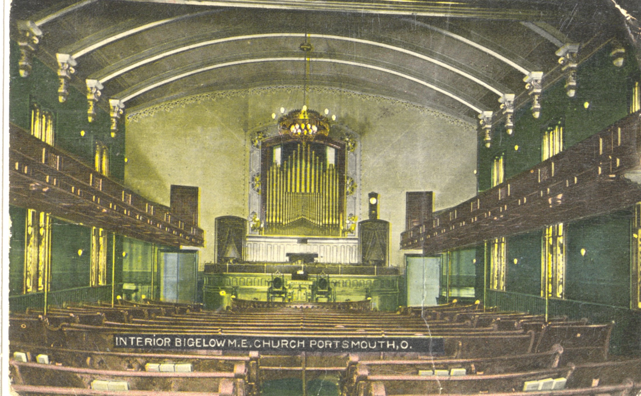 H. A. Lorberg, publisher, “Interior Bigelow M. E. Church, Portsmouth, O.,” Scioto County Public Library Local History Digital Collection, accessed December 14, 2025, https://www.sciotolibrary.org/history/items/show/18391.