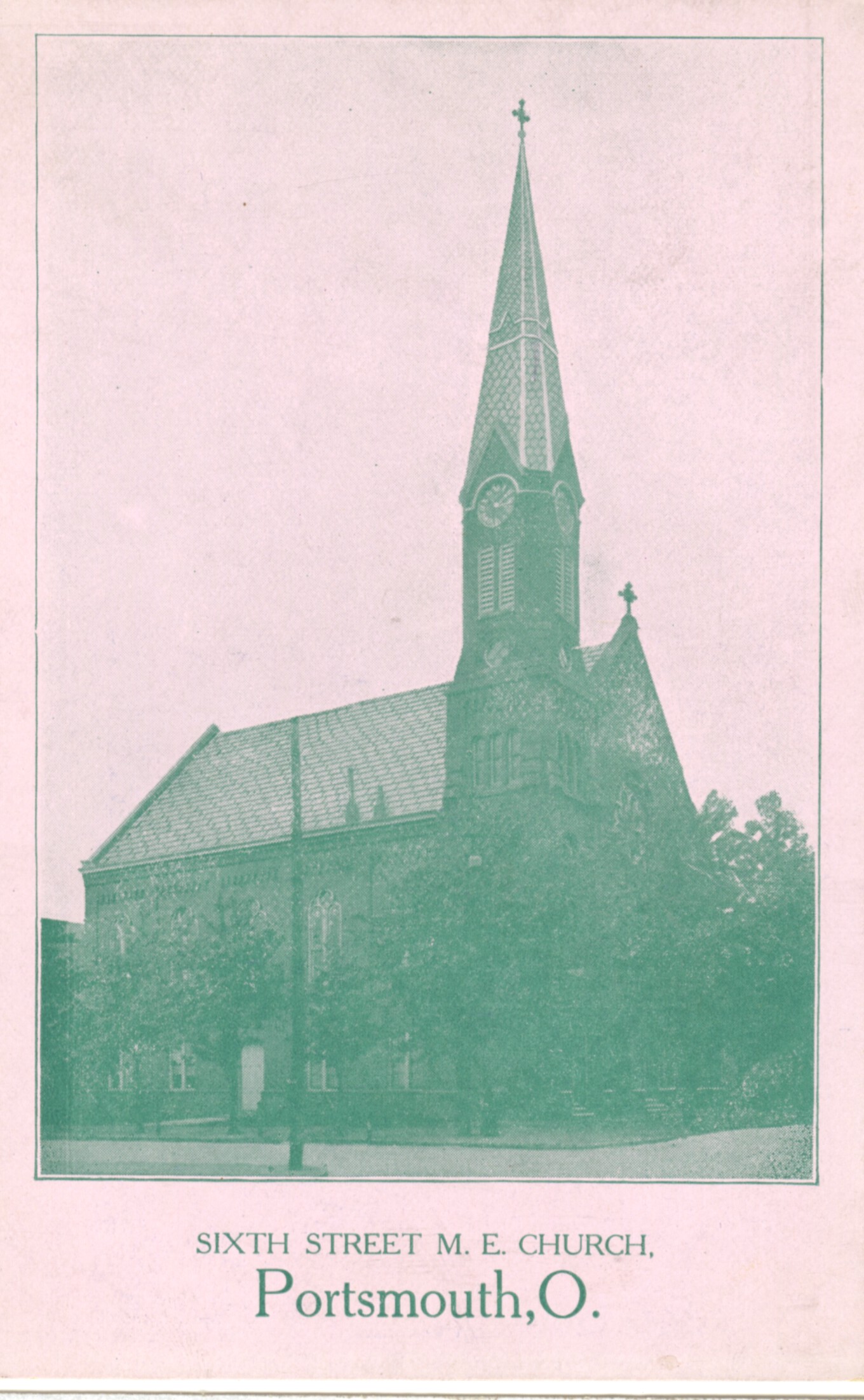 Unknown , “Sixth (6th) Street M. E. Church, Portsmouth, O.,” Scioto County Public Library Local History Digital Collection, accessed December 8, 2025, https://www.sciotolibrary.org/history/items/show/18416.