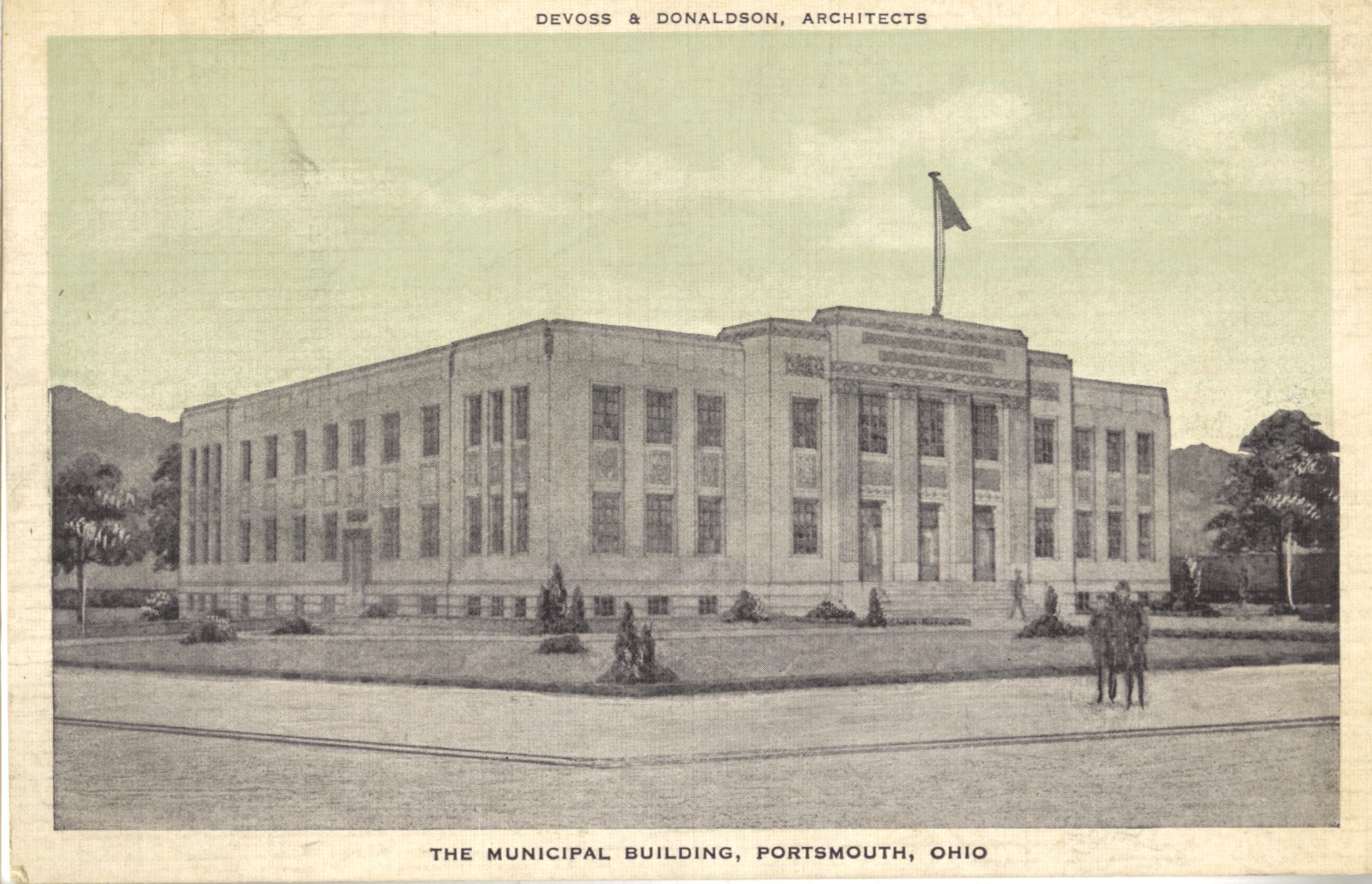 Unknown, “The Municipal Building, Portsmouth, Ohio,” Scioto County Public Library Local History Digital Collection, accessed December 14, 2025, https://www.sciotolibrary.org/history/items/show/18571.