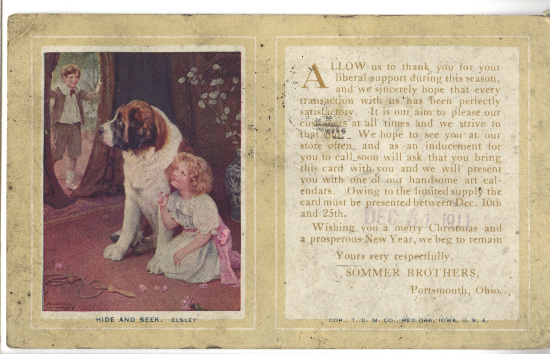 Cop., T.D.M. Co., Red Oak, Iowa, U.S.A., “Sommer Brothers promotional card,” Scioto County Public Library Local History Digital Collection, accessed December 6, 2025, https://www.sciotolibrary.org/history/items/show/18591.